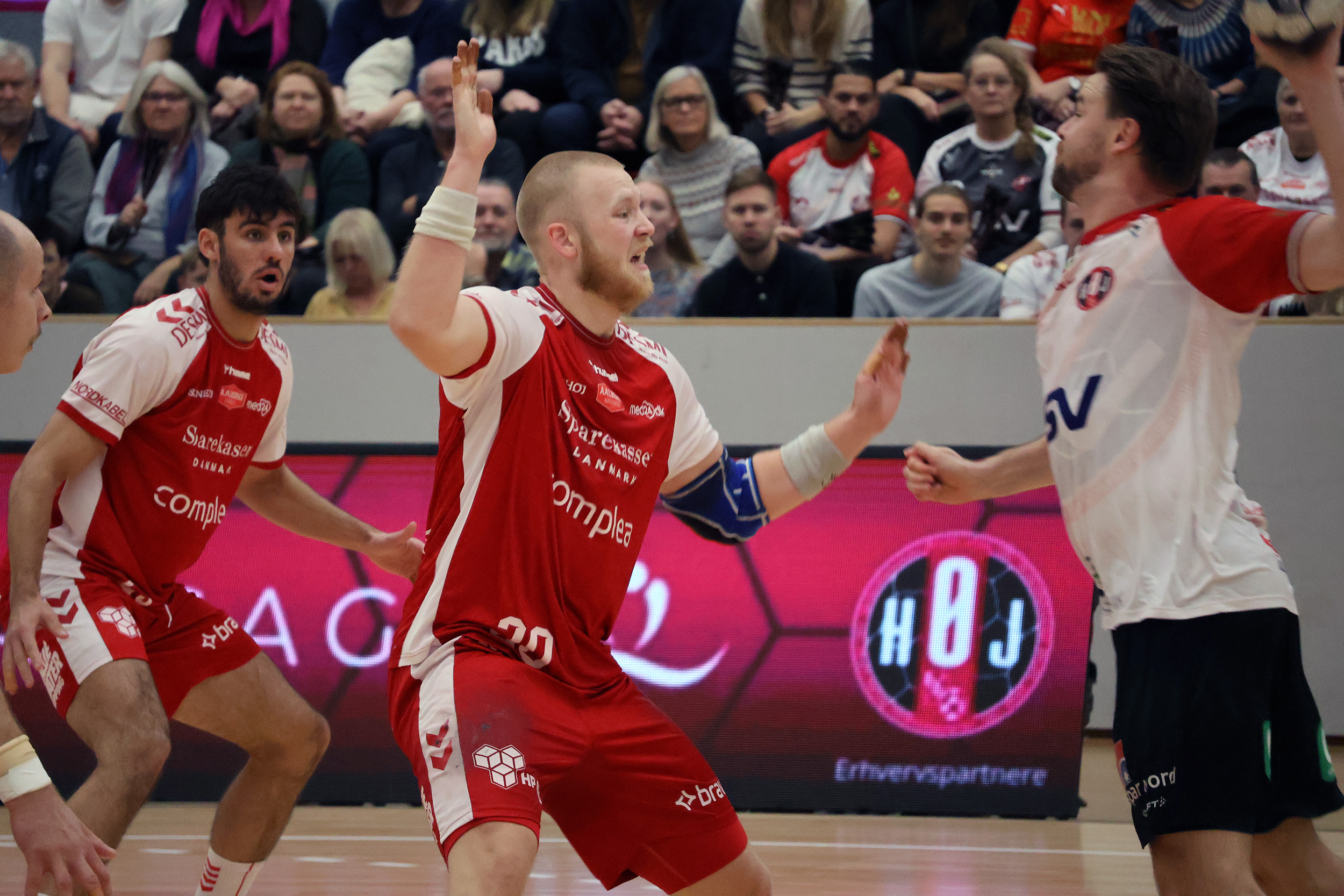På en god anden halvleg sikrede de regerende mestre lørdag en sejr på 28-32 på udebane mod HØJ Elite. Thomas Arnoldsen topscorer med otte mål.