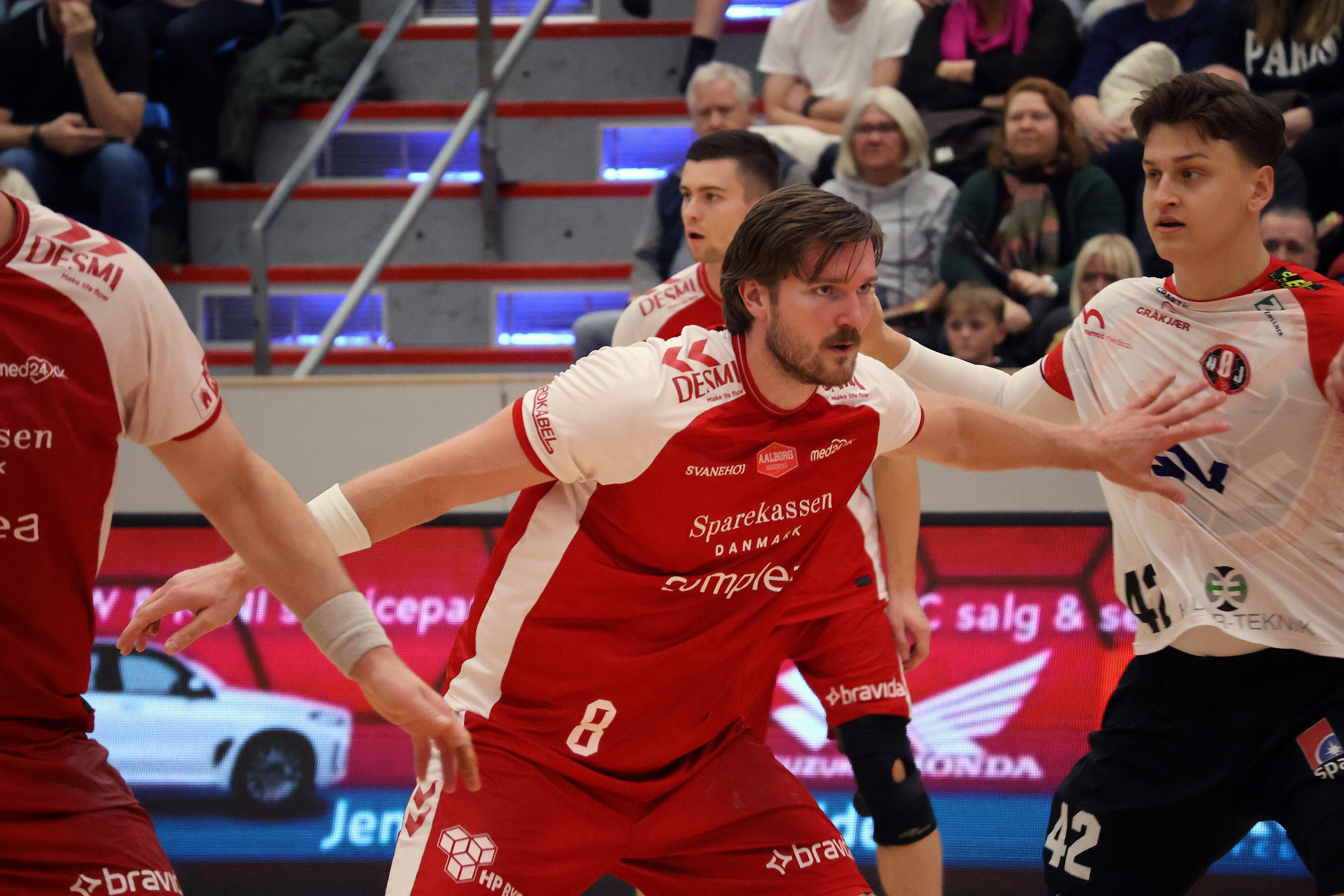 Fortsat var tingene tætte, men en årvågen Landin og tre fuldtræffere i træk fra Arnoldsen gav atter luft ved stillingen 20-23 efter 44 minutter, inden Juri Knorr fik en tvivlsom udvisning for angiveligt at kante den kommende Aalborg-spiller Tobias Nielsen.