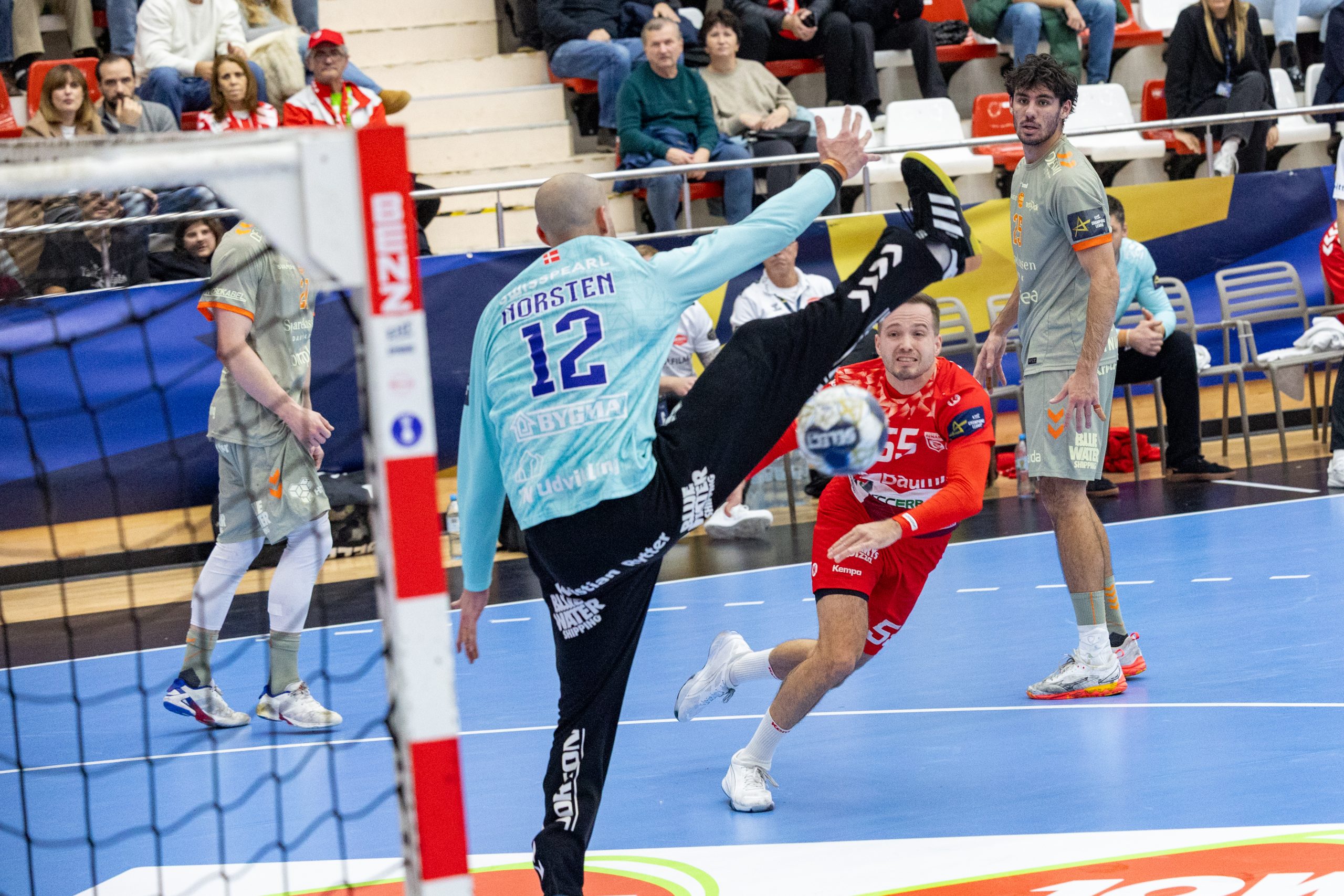 Rutinerede Sander Sagosen tog nu ansvar og øgede føringen til to mål, inden Norsten med en refleksredning i verdensklasse, gav Sagosen mulighed for at score igen i modsatte ende af banen.