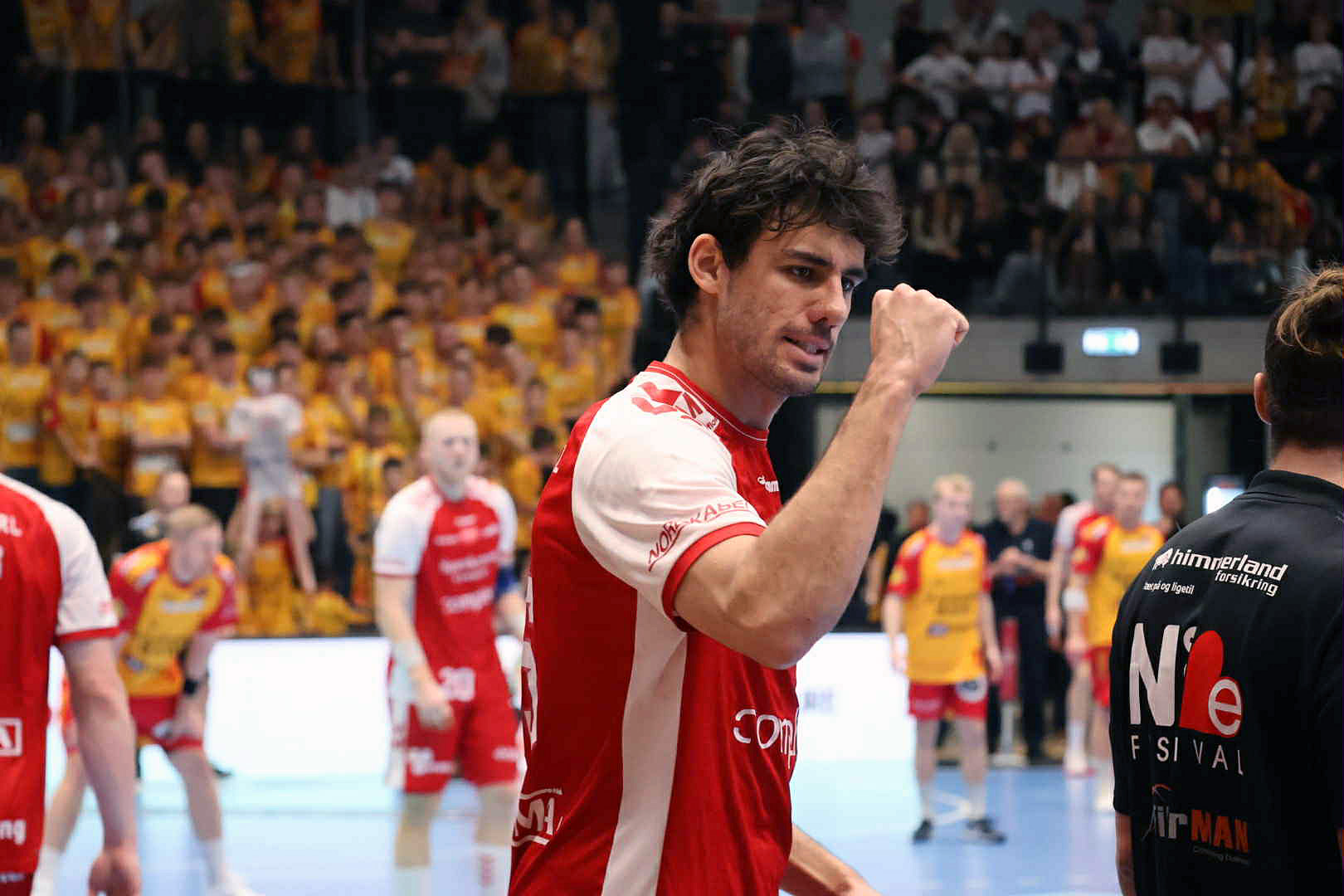 Juri Knorr åbnede anden omgang med scoring og dernæst en assist til Simon Hald, inden sidstnævnte blev idømt en udvisning, hvilket Frederik Bjerre udnyttede til reducering til 14-15.