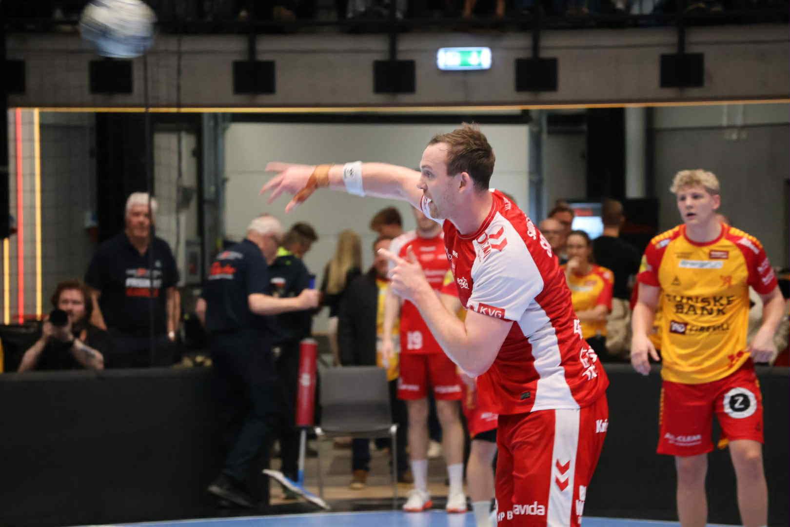 En udvisning til GOG’s Henrik Jakobsen kunne ikke sætte gang i tingene, og i stedet kunne Emil Tonnesen udligne til 7-7 efter 20 minutter, inden overtalsscoringer fra Simon Hald og Buster Juul på straffe fik genetableret føringen.