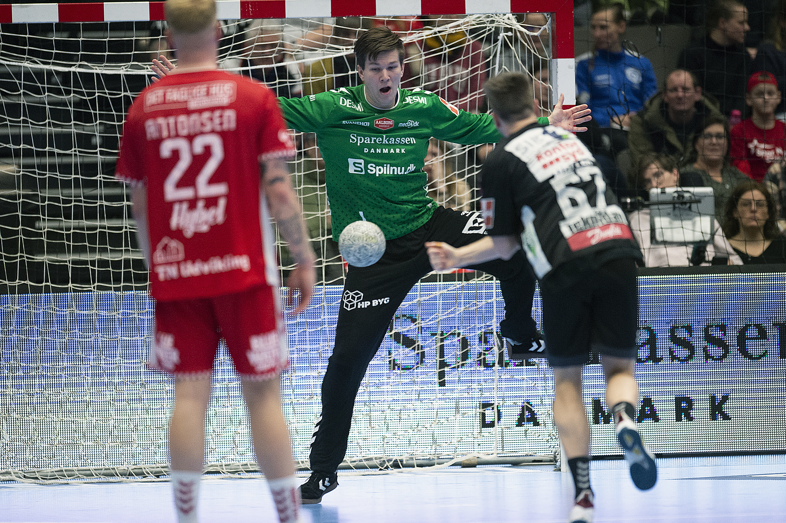 Med ca. 15 minutter tilbage af kampen kom vores Simon Gade i målet til sin landsholdsdebut. Han lagde ud med en redning på straffekast og viste sig rigtig flot frem i målet på sin hjemmebane. Fem redninger på 10 forsøg kræver ikke meget hovedregning for at konkludere et fremragende redningsprocent på 50!