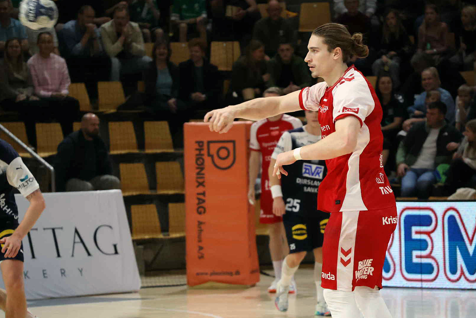Minuttet efter faldt opgørets første udvisning til Alec Smit, for bevidst at ramme bolden med foden – og det blev indledningen på en god periode for østjyderne, der fik ændret 5-9 til 8-9.