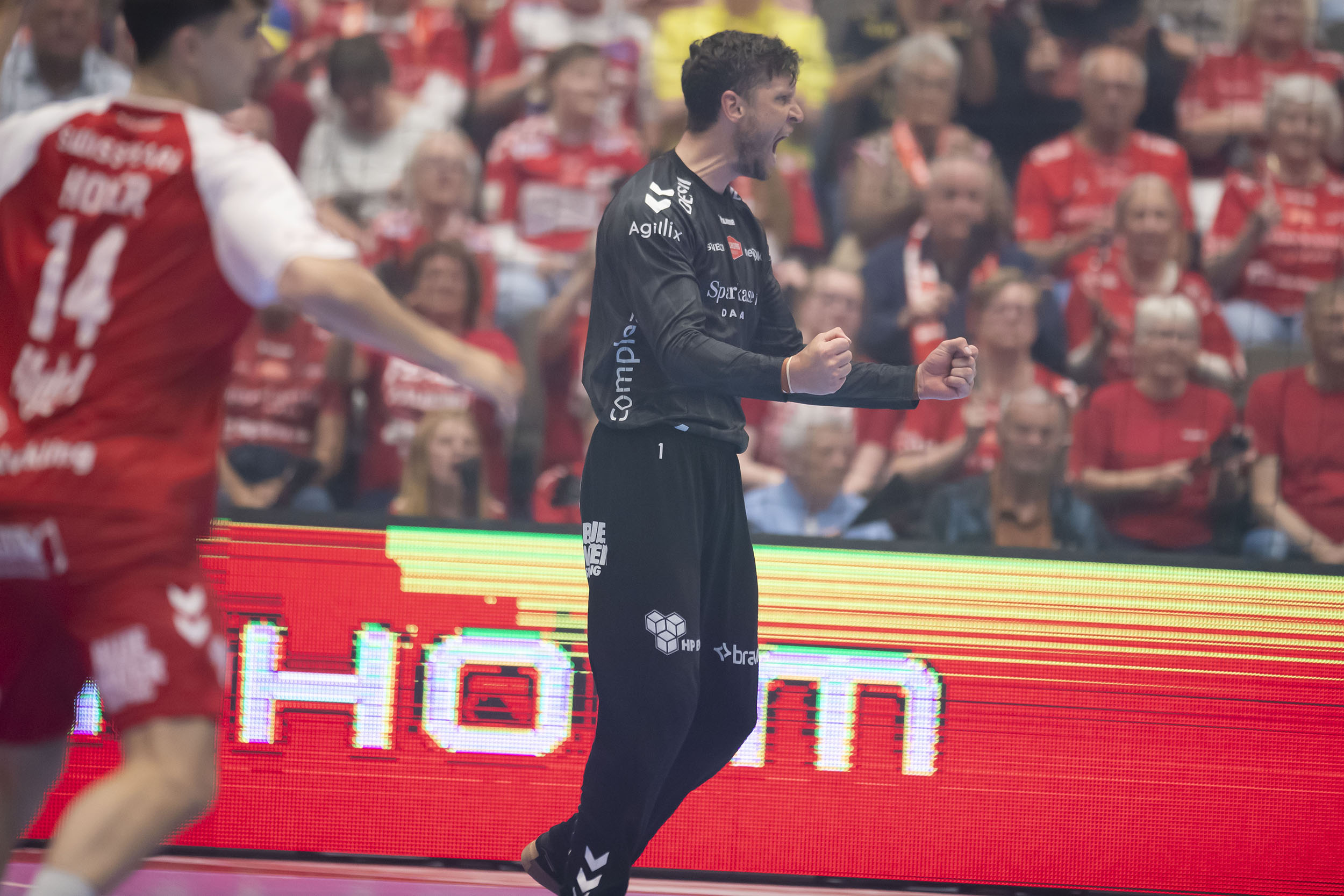 I en stemningsfyldt Sparekassen Danmark Arena fik opgøret en livlig start, hvor Landin indledte med redninger på to af gæsternes første fire forsøg, mens Lukas Nilsson i modsatte ende nettede to gange på vej til en tidlig 3-2 føring efter fem minutter.
