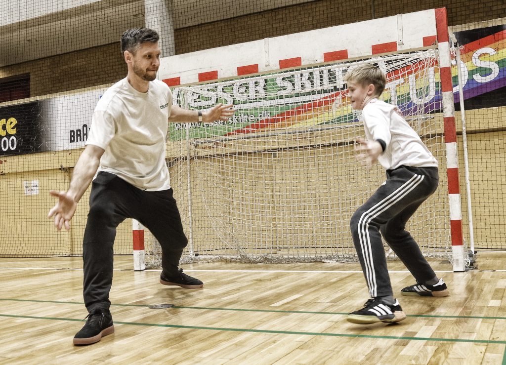 – Det må de selv om. Pelle spiller lige nu med stor iver, heldigvis ikke som målmand, for jeg kan forestille mig, at det ville være irriterende at blive sammenlignet med farmand. Silje har gået til håndbold, men foretrækker nu springgymnastik og klaver, hvor hun allerede er bedre end mig.