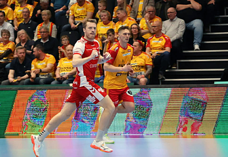 Cheftræner Simon Dahl måtte på dagen se bort fra en sygdomsramt Patrick Helland Anderson, mens det blandt de 16 spillere på holdkortet var det Niklas Landin, Kristian Bjørnsen, Thomas Arnoldsen, Mads Hoxer, Juri Knorr, Alexander Blonz og Simon Hald der indledte på banen. I defensiven afløste anfører René Antonsen indledningsvis for Knorr.